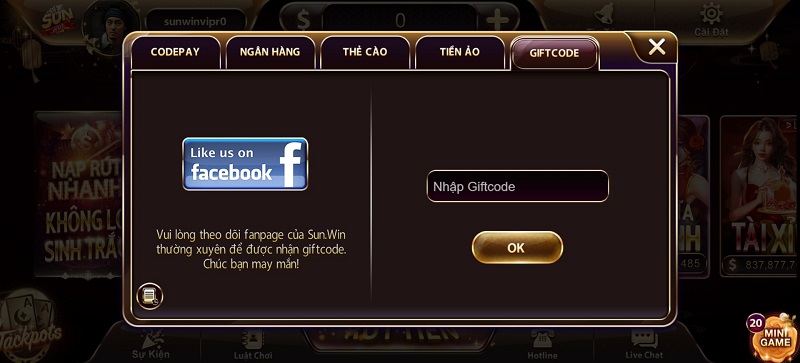 - Cách thực hiện: Người chơi cần nhập mã gift code vào hệ thống để nạp tiền. Hình thức này không chỉ tiện lợi mà còn thường xuyên đi kèm với các chương trình khuyến mãi hấp dẫn.